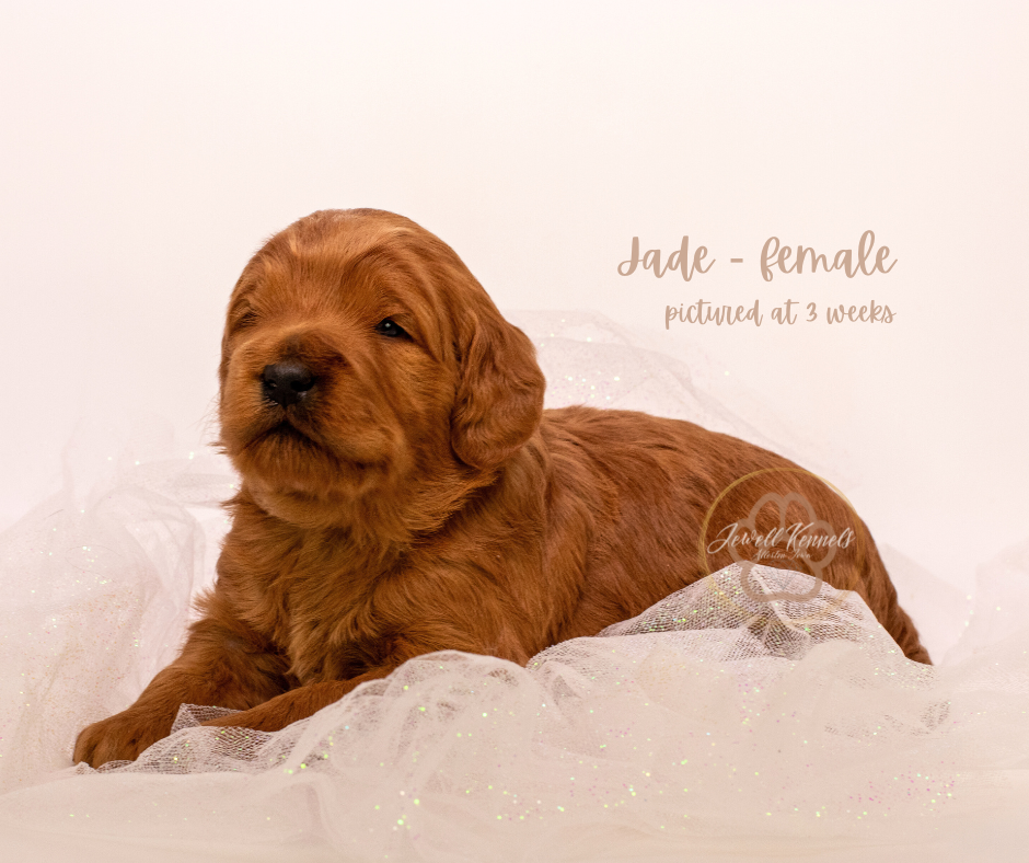 Meet Jade and Opal (middle two), our lovely girls with gentle spirits and graceful presence, alongside Flint and Copper, two handsome boys known for their steady confidence and bold charm. Together, this litter embodies the natural elegance and solid foundations we strive for in every Jewell Kennels puppy.